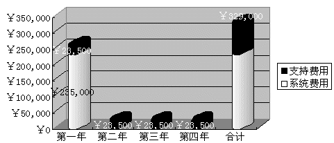 2) 語音合成投入費用 科大訊飛公司語音合成技術以及硬件設備的折舊期為四年,而就經(jīng)過大量統(tǒng)計所得到的數(shù)據(jù)證明,采用語音技術后的一個72線的IVR系統(tǒng),大約可以完成一個中型的呼叫中心(配備100座席人員)所能提供的60%的業(yè)務。下圖為采用訊飛語音合成技術建設這樣的IVR系統(tǒng)的投入。