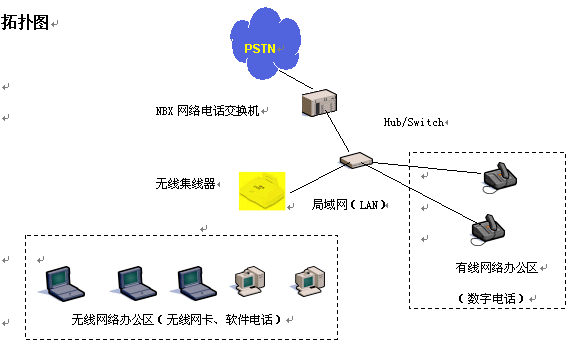 隨著信息時(shí)代的來(lái)臨,電話、電腦成了辦公領(lǐng)域的重要工具,人們?cè)谵k公室通過(guò)計(jì)算機(jī)網(wǎng)絡(luò)共享數(shù)據(jù)資源、傳遞數(shù)據(jù)信息,彼此間通過(guò)電話言語(yǔ)溝通。在人們享受到高科技帶來(lái)的高效率的同時(shí),也感到一些不便,例如計(jì)算機(jī)網(wǎng)絡(luò)、電話網(wǎng)都需要單獨(dú)鋪設(shè)專用的線路,線路的變更往往是讓人心煩的事情。隨著各公司推出無(wú)線局域網(wǎng)絡(luò)解決方案(AirConnect)和NBX網(wǎng)絡(luò)電話交換機(jī)平臺(tái)的推出,通過(guò)無(wú)線局域網(wǎng)絡(luò)技術(shù),語(yǔ)音、數(shù)據(jù)兩網(wǎng)合一技術(shù),將電腦、電話機(jī)合二為一,同時(shí)從線路的束縛中解放出來(lái)。人們?cè)僖膊挥脫?dān)心布線問(wèn)題,可以隨處移動(dòng)辦公,享受無(wú)線網(wǎng)絡(luò)、無(wú)線話音,大大提高人們的辦公效率。