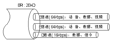 ◆基本速率接口(BRI:Basic Rate Interface),該速率由兩個承載信道和一個數(shù)據(jù)控制信道構(gòu)成,稱為2B+D,其中B(Bearer)為標準PCM速率64kbps,D(Data)為16kbps。該速率適用于家用或小型企業(yè)需要。