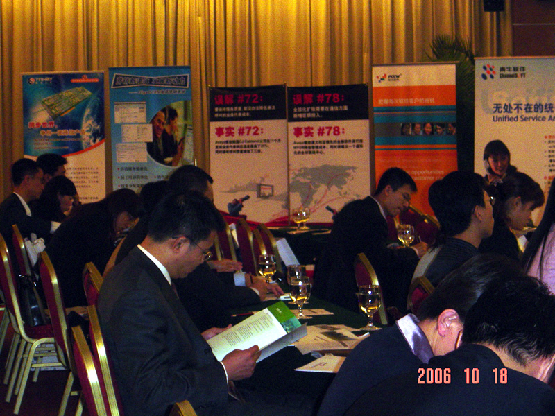 。。2006年10月18日,2006保險(xiǎn)業(yè)呼叫中心應(yīng)用暨電話營銷高峰研討會在北京天鴻科園大酒店隆重召開,以下是會議現(xiàn)場的相關(guān)圖片報(bào)道: