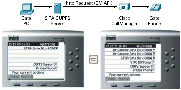 Manager發(fā)出一個(gè)HTTP請求,獲取該航空公司的設(shè)備檔案。如果該業(yè)務(wù)代表位于某個(gè)登機(jī)口柜臺(tái),CUPPS服務(wù)器將請求更改多部電話的配置。這將通過多個(gè)HTTP請求實(shí)現(xiàn)。應(yīng)當(dāng)指出的是,允許人工登陸柜臺(tái)電話的Extension