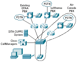 Median Option 81c PBX來取代他們已有的Centrex服務(wù)。這個(gè)PBX為整個(gè)機(jī)場提供了超過2500條線路,其中包括所有關(guān)鍵任務(wù)型區(qū)域,例如現(xiàn)有的控制塔和所有機(jī)場登機(jī)柜臺(tái)。讓形勢更加不利的是,該PBX已經(jīng)銷售完畢,正在由一家本地電話公司負(fù)責(zé)管理。該公司是思科在數(shù)據(jù)方面的合作伙伴。它拒絕與思科合作安放IP電話。另外一個(gè)關(guān)鍵的考慮因素是該機(jī)場最主要的航空公司租戶——加拿大航空——也是Nortel