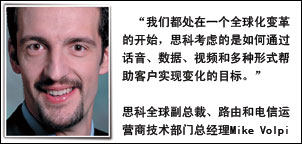 “過去有一個應用就有一個網(wǎng)絡,而現(xiàn)在的理想模式是只用一個通用的網(wǎng)絡,使運營商可以更快、更經(jīng)濟地推出新業(yè)務,并且使運營商可以把不同的介質(zhì)類型混合在一起,可以創(chuàng)造一種過去不曾有過的用戶體驗,而IP則是整個通用網(wǎng)絡的基礎”,這是Volpi和Dominguez的共同認識,也是思科在電信版圖中雄心勃勃的底氣所在。