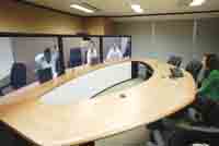 10月24日,在思科公司位于香港灣仔鷹君大廈的一間會(huì)議室,包括思科CEO錢伯斯在內(nèi)的六名高管已經(jīng)“坐”在橢圓型的會(huì)議桌一側(cè)。“Hi!”隨著錢伯斯的一聲招呼,會(huì)議室內(nèi)的人這才發(fā)現(xiàn),正在講話的“錢伯斯”是在三塊連接起來(lái)的等離子屏幕上,而此刻他真實(shí)的位置是在思科位于美國(guó)硅谷的總部。65英寸的1080P高清晰屏幕上,錢伯斯等人的影像如真人大小,加上三塊屏幕被設(shè)計(jì)成會(huì)議桌的另外一半,讓人誤以為錢伯斯真的來(lái)到了香港。