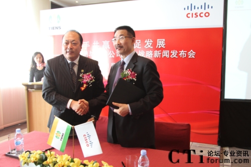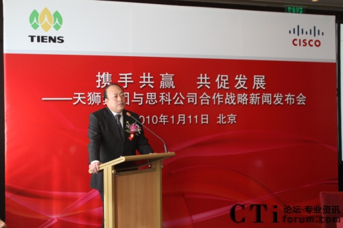 CTI論壇(ctiforum)1月12日消息(記者 張塵):2010年1月11日,北京——“攜手共贏 共促發(fā)展——天獅集團與思科公司戰(zhàn)略項目新聞發(fā)布會”在北京召開,雙方共同宣布,天獅集團國際健康產(chǎn)業(yè)園網(wǎng)絡(luò)平臺成功啟用,并正式達(dá)成合作戰(zhàn)略。天獅集團董事長兼總裁李金元先生與思科全球副總裁、思科中國副董事長兼總裁林正剛先生出席新聞發(fā)布會,并進行簽約儀式。通過本次強強聯(lián)合,思科面向服務(wù)的網(wǎng)絡(luò)架構(gòu)(SONA)全面部署于天獅集團國際健康產(chǎn)業(yè)園,為天獅集團業(yè)務(wù)的穩(wěn)定持續(xù)發(fā)展以及信息化水平的進一步提升提供了可靠保證,同時也為雙方未來更深層次的合作打下了堅實的基礎(chǔ)。