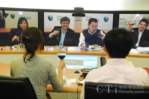 CTI論壇(ctiforum)5月6日消息(記者 楊佳林):中國,北京,2010年4月28日:無需像德國國防部長古滕貝格那樣駕車行駛3000多公里長途奔襲,跨越太平洋也一樣享受零距離的午餐。思科中國首席技術官梁永健、思科中國區(qū)副總裁華東區(qū)總經理陳葵、思科WebEx研發(fā)及協(xié)作軟件全球副總裁袁征今天通過思科的網絡會議技術和中國知名博主在北京、上海和舊金山三地共進午餐。