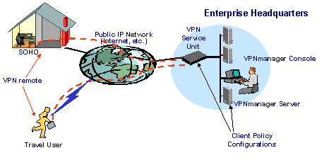 在本方案中,VPN設(shè)備選用Avaya公司的VPN系列網(wǎng)關(guān)產(chǎn)品,網(wǎng)絡(luò)中心使用VSU-2000實(shí)現(xiàn)高速的數(shù)據(jù)交換以滿足需要。VPN設(shè)備和移動用戶的管理采用VPNManager和VPNRemote軟件來完成。VPNManager能夠?qū)崿F(xiàn)對整個(gè)VPN網(wǎng)絡(luò)進(jìn)行管理,滿足用戶認(rèn)證、加密策略的制定和修改等等重要工作。VPNRemote安裝在移動用戶的計(jì)算機(jī)上,為用戶提供在任何地點(diǎn)只需接入任意一個(gè)ISP即可建立VPN連接的功能,充分滿足移動用戶的的需要。企業(yè)網(wǎng)絡(luò)中心不再需要建立撥入服務(wù)系統(tǒng)為遠(yuǎn)程用戶提供撥入服務(wù)。