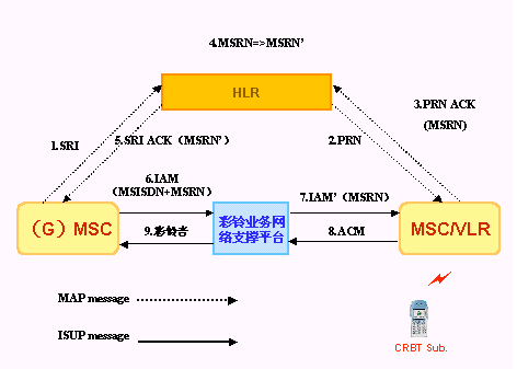 此種方案需要改造MSC交換機(jī),使其支持彩鈴業(yè)務(wù),在HLR中需要對(duì)那些開(kāi)通多彩鈴音業(yè)務(wù)的用戶(hù)增加業(yè)務(wù)屬性,并對(duì)其進(jìn)行標(biāo)記。