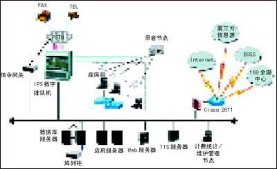 本項目采用新太科技交互式電話會議系統(tǒng)2.0版,系統(tǒng)各組成部分見圖1。前端接入設備采用SUNTEK-IPS數(shù)字排隊機,負責多方電話會議用戶和其他業(yè)務用戶接入的交換排隊、自動語音資源提供、座席服務資源提供、錄音、計費等等。SUNTEK-IPS數(shù)字排隊機是新太科技最新一代軟交換平臺,是整個系統(tǒng)平臺的核心。它綜合了新太科技歷代平臺的優(yōu)勢,采用世界上最先進的軟交換(包交換)技術和CompactPCI技術,支持主控CPU卡冗余和熱拔插,擁有更大規(guī)模的交換系統(tǒng)總線(CompactPCI的CTBus總線共有4096個時隙,理論上,單個機框可以支持4k×4k的交換)。SUNTEK-IPS數(shù)字排隊機基于自主開發(fā),擁有自主產(chǎn)權,保證了極高的性價比,已經(jīng)通過了信息產(chǎn)業(yè)部入網(wǎng)認證。SUNTEK-IPS數(shù)字排隊機現(xiàn)已在十多個省成功開展全省業(yè)務的事實,證明了它具備技術先進、可靠性強等特點。