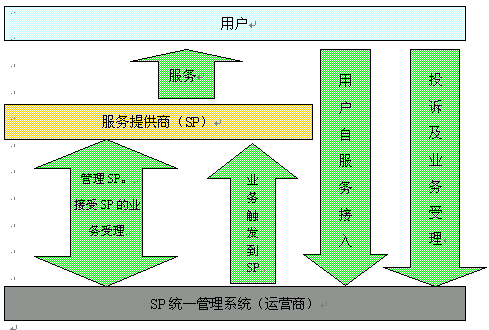 在對SP統一管理的過程中,SP、新太科技、運營商、運營商用戶組成了一條完整的價值鏈,如下圖所示: