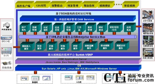 新太視頻監(jiān)控聯(lián)網(wǎng)管理平臺構(gòu)建在符合國際規(guī)范的開放的中間平臺上,天然的具備開放性、成熟度;其分布式運算的能力,針對大容量高并發(fā)的場景能把運算分布到多臺機(jī)器,提高整個系統(tǒng)的響應(yīng)能力,并通過引入SOA思想,有效支持應(yīng)用之間的數(shù)據(jù)整合,而且將各個應(yīng)用子系統(tǒng)建立松散耦合的關(guān)系,形成靈動的按需疊加的系統(tǒng)。