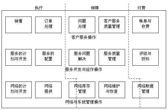 電信管理論壇將OSS的電信運(yùn)營支持系統(tǒng)概括為如下表格: