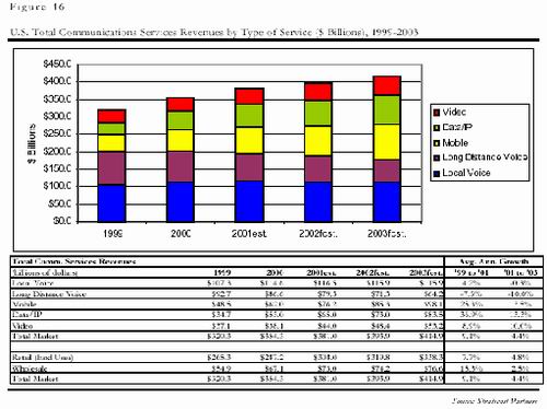 電信市場不是一個孤立的市場,而是由電信服務(wù)和電信制造兩個緊密相連的市場組成的。電信制造業(yè)不斷進(jìn)行研發(fā)創(chuàng)新,為電信服務(wù)業(yè)提供新的業(yè)務(wù);而電信服務(wù)也利用電信制造業(yè)的新技術(shù),并把這些服務(wù)最終提供給商業(yè)和普通消費(fèi)者兩類用戶?梢哉f,電信制造業(yè)的發(fā)展在很大程度上是由電信服務(wù)業(yè)決定的。要了解電信制造市場的將來,不得不從電信服務(wù)市場的變化談起!