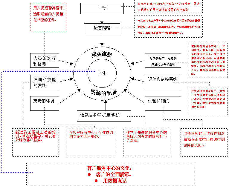 1. 呼叫中心管理文化的建立。通過員工的培訓,會議和其他內(nèi)部溝通的渠道,推廣數(shù)字化管理的文化。在呼叫中心內(nèi),所有的管理指標都將由數(shù)字進行支撐。沒有模糊的類似于"今天的電話很忙"的描述,所有的溝通將會是:"今天的來電數(shù)為358個,應答數(shù)為279個,平均通話時間2分25秒種,話后工作時間34秒,服務等級為85/30。等等。