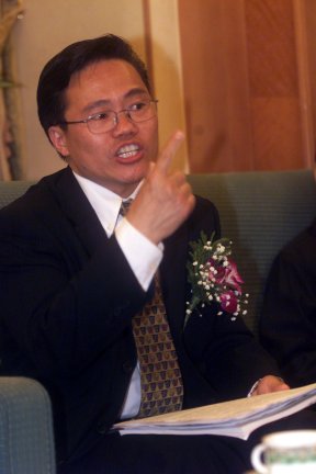 CTI論壇斑竹雙子星(趙棟偉)正為現(xiàn)場幸運(yùn)觀眾頒獎