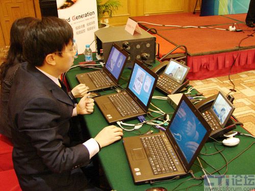 貫穿此次活動的一大重頭——3G環(huán)境下視頻業(yè)務(wù)現(xiàn)場演示,被認為是產(chǎn)業(yè)融合創(chuàng)新從理論思路到實踐的跨越。在本次活動中,現(xiàn)場展示了折扣搜尋店、移動保安和電話QQ面對面等幾項基于視頻特性的創(chuàng)新應(yīng)用,分別演示了IVVR、視頻監(jiān)控和視頻會議這3個功能。演示業(yè)務(wù)顯示出Keygoe多媒體交換機的視頻特性,以及在3G增值業(yè)務(wù)中的潛在實力。