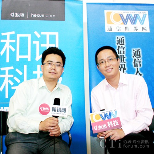 圖:通信世界網(wǎng)總編劉啟程(左)現(xiàn)場訪談東進技術總裁賀建楠(右)