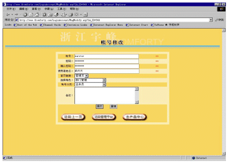 帳號系統(tǒng)主要是為適應一個分銷商內(nèi)部會有多個不同等級的人使用這個系統(tǒng)。對于分銷商而言,它可以建立多個帳號,并為每個帳號分配不同的權(quán)限,以及每個帳號可以對應管理不同下屬企業(yè)(參看圖5和圖6)。還可以為不同的帳號提供不同的進入頁面,使得用戶使用更加方便。