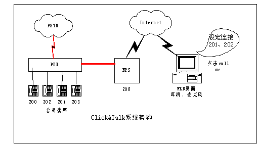 舉個(gè)例子,在傳統(tǒng)的網(wǎng)上交流手段下,對(duì)于一個(gè)在線商戶來(lái)說(shuō),其客戶如果需要與而且也容易造成客戶流失,F(xiàn)在采用Click&Talk系統(tǒng)后,一個(gè)在線的商戶只要將一個(gè)Click & Talk的按鈕嵌在在線商店里。世界各地的用戶只需要通過(guò)PC,點(diǎn)擊在線商戶的這個(gè)按鈕,就能與商戶電話聯(lián)系,或請(qǐng)求在方便的時(shí)間給予回?fù)。通過(guò)這種通信模式,世界各地的客戶都能和您保持密切互動(dòng)的聯(lián)系,而不用擔(dān)心長(zhǎng)途電話的費(fèi)用。還可以實(shí)現(xiàn)公司出差人員及分支機(jī)借助Click&Talk平臺(tái)和公司總部的通話的應(yīng)用,大幅節(jié)省話費(fèi)成本。
