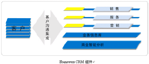 。。作為企業(yè)級(jí)客戶關(guān)系全面解決方案,Ebanswers CRM包含了可無(wú)縫整合又可獨(dú)立運(yùn)行的三個(gè)功能組件:銷售,營(yíng)銷,服務(wù)流程自動(dòng)化軟件系統(tǒng);客戶溝通集成信息化方案;深層商業(yè)智能分析。其中客戶溝通層組體是Ebanswers