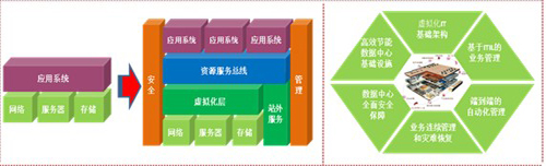 企業(yè)的發(fā)展和業(yè)務(wù)的創(chuàng)新越來越離不開IT技術(shù)的應(yīng)用,傳統(tǒng)的以項目為建設(shè)單元的數(shù)據(jù)中心造成了煙囪式的建設(shè)、分布式的開發(fā)、分離式的運維,使眾多企業(yè)的 IT 形成了復(fù)雜的、孤立的架構(gòu),信息孤島隨處可見,無法提供靈活、安全和易于擴(kuò)展的應(yīng)用環(huán)境,從多方面影響了業(yè)務(wù)運營的效果。隨著商業(yè)模式的不斷創(chuàng)新、IT技術(shù)的不斷發(fā)展,業(yè)務(wù)與IT日益密切,傳統(tǒng)的數(shù)據(jù)中心建設(shè)已經(jīng)無法滿足未來業(yè)務(wù)發(fā)展的需要,難于部署新的應(yīng)用與服務(wù),設(shè)備利用率低下,業(yè)務(wù)彈性較難,無法保證系統(tǒng)和應(yīng)用的可用性和可靠性,同時不斷上升的能源成本和能源需求、機(jī)房空間需求阻礙了業(yè)務(wù)的發(fā)展。