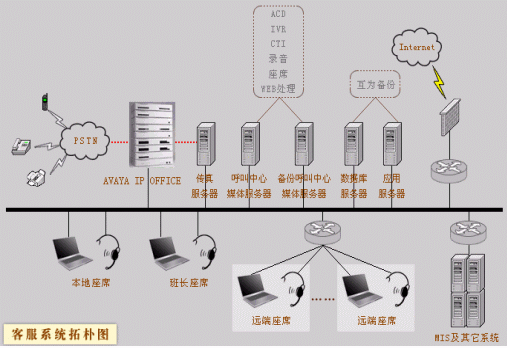 利用AVAYA IP OFFICE和Intel的HMP配合構(gòu)建的呼叫中心,是新一代小型呼叫中心的范例。利用IP OFFIC的高穩(wěn)定性和分布能力,HMP提供的基于IP媒體的豐富性實現(xiàn)了方案要求的高度融合性分布式和可擴展性要求。