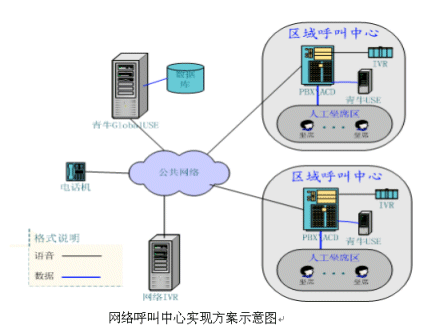 青牛的網(wǎng)絡(luò)呼叫中心與傳統(tǒng)的分布式呼叫中心的差異在于,青牛的網(wǎng)絡(luò)呼叫中心不僅支持各個(gè)分布節(jié)點(diǎn)之間的數(shù)據(jù)、語(yǔ)音同步轉(zhuǎn)移,同時(shí)還支持呼叫在各個(gè)分布節(jié)點(diǎn)組成的呼叫中心網(wǎng)絡(luò)內(nèi)的統(tǒng)一路由、調(diào)度,支持對(duì)于呼叫中心節(jié)點(diǎn)網(wǎng)絡(luò)作為一個(gè)整體的監(jiān)控、統(tǒng)計(jì),支持基于呼叫中心節(jié)點(diǎn)網(wǎng)絡(luò)整體的坐席管理(強(qiáng)制簽出、強(qiáng)插、監(jiān)聽(tīng)),也即是說(shuō),客戶可以將物理上分布、邏輯上集中的呼叫中心節(jié)點(diǎn)網(wǎng)絡(luò)看作一個(gè)巨大的、統(tǒng)一的虛擬呼叫中心。