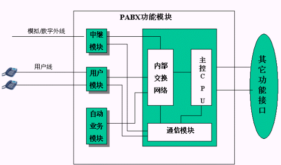 ·輔助功能模塊(如VoIP、自動(dòng)傳真、語音信箱、電話會(huì)議、郵件服務(wù)器、Web服務(wù)器等)和開發(fā)接口等