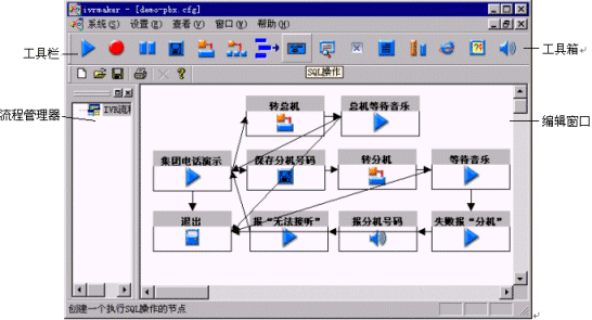 很簡單,啟動ZingServ IVR流程的定制工具IVRMaker后,新建或打開一個流程,然后按照以下4步進行操作: