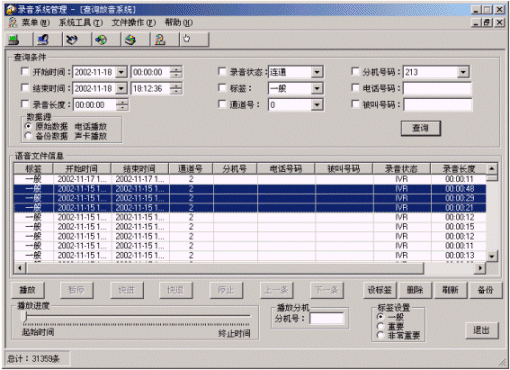 系統(tǒng)提供了自動備份、手動備份和選擇備份3種備份方式,既能很好地支持海量錄音,又為錄音文件的管理提供了很大的方便。
