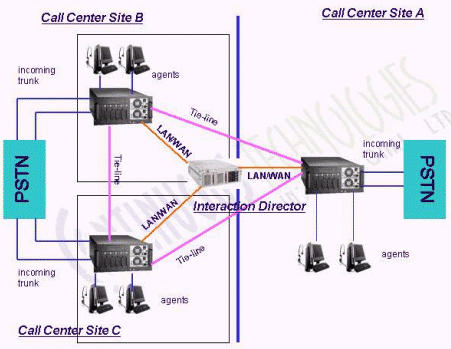 Interaction Director的功能比Interaction Multi-Site還要強(qiáng)大的多,不但支持Interaction Multi-Site的具有的功能外,還支持更大規(guī)模的分布式系統(tǒng)、呼叫前和呼叫后路由(呼叫前路由采用SS7信令,需要電信運(yùn)營(yíng)商的支持)以及真正的網(wǎng)絡(luò)排隊(duì)機(jī)(Network ACD)等。Interaction Director通常安裝在一臺(tái)單獨(dú)的服務(wù)器上,用來決定最佳分布點(diǎn)的系統(tǒng)處理來電。Interaction Director可以實(shí)時(shí)監(jiān)控各個(gè)分布點(diǎn)的系統(tǒng)負(fù)載,坐席、技能、隊(duì)列等狀態(tài)。采用Interaction Director可以方便的實(shí)現(xiàn)分布式呼叫中心系統(tǒng)的負(fù)載均衡和災(zāi)難備份。舉例來說,在周末話務(wù)量較小的情況下,為節(jié)省資源和運(yùn)營(yíng)成本,可以將北京中心的所有來電路由至上海中心處理;又如,上海中心發(fā)生故障,可以將所有來電路由至北京中心處理。