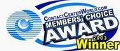 “用戶最佳選擇獎(jiǎng)”專門頒發(fā)給呼叫中心方面的最佳公司、解決方案或軟件,獎(jiǎng)項(xiàng)由所有呼叫中心的使用者投票評選而得。ContactCenterWorld.com