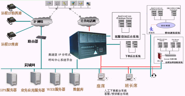 物流是商業(yè)發(fā)達社會必然高速度發(fā)展的產(chǎn)業(yè)之一,不僅僅要求物品從供應(yīng)地向接收地的實體流動過程,同時也是信息流和資金流的過程,根據(jù)實際不同的需要,需要運輸、儲存、裝卸、搬運、包裝、流通加工、配送、信息處理等基本過程有機結(jié)合,從而完成用最短的時間合理將物品運向目的地。在整個物流過程中,涉及到的各個環(huán)節(jié),分散在不同的區(qū)域,需要一個信息平臺將整個物流環(huán)節(jié)聯(lián)接起來,及時把握客戶的定貨需求,進行車輛的調(diào)度管理,庫存管理以及票據(jù)管理等,力求實現(xiàn)用最少的庫存,最短的運輸距離滿足客戶的需求,F(xiàn)代物流企業(yè)與以往的物流企業(yè)不同,不僅僅局限于物流中的某一個環(huán)節(jié),而是普遍采用了信息化管理技術(shù),如ERP、物流管理(LM)、SCM等應(yīng)用系統(tǒng),并通過Internet將遍布在各地的物流中心與客戶連接起來,形成一個高效率的物流配送網(wǎng)絡(luò)。建立在奧迪堅IPDCC的分布式呼叫中心平臺上的光大科技物流客戶服務(wù)系統(tǒng),以IP技術(shù)為核心在網(wǎng)絡(luò)上構(gòu)建一個語音和數(shù)據(jù)的統(tǒng)一平臺,在一臺服務(wù)器上融合了CTI、PBX、ACD、VoIP、Voice、Mail,Recording,Call