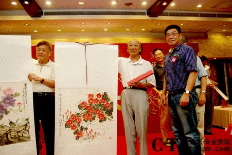 圖:為畫家代表現(xiàn)場(chǎng)捐畫的場(chǎng)景