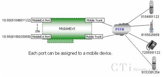 移動(dòng)分機(jī)為奧迪堅(jiān)系統(tǒng)下所支持的特有功能,它可讓公司內(nèi)部的PBX(電話交換機(jī))拓展使用到個(gè)人的手機(jī)、家用電話或是小型辦公室電話的遠(yuǎn)程用戶,讓使用者在個(gè)人手機(jī)上擁有公司內(nèi)部分機(jī)的所有功能,使用手機(jī)就像使用公司桌機(jī)一樣的方便!