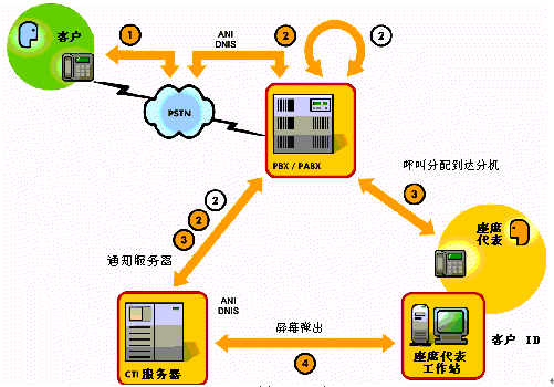 ⑥座席代表接收呼叫并彈出與聯(lián)系人數(shù)據(jù)相關(guān)的屏幕