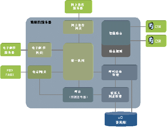 交互(輔助)服務(wù)器是客戶服務(wù)系統(tǒng)體系結(jié)構(gòu)的主要組件,控制所有的客戶交互以及它們?cè)谧黹g的分配。其主要功能是: