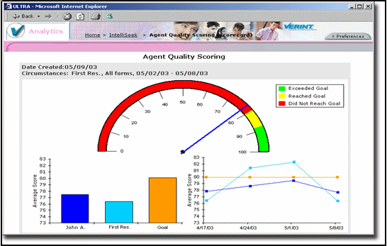 IntelliSeek相對(duì)評(píng)估報(bào)表設(shè)計(jì)器的優(yōu)勢(shì)包括分析座席業(yè)績(jī)與設(shè)定目標(biāo)之間的差距,更豐富的報(bào)表表現(xiàn)形式(積分卡、圖表、文本報(bào)表)。