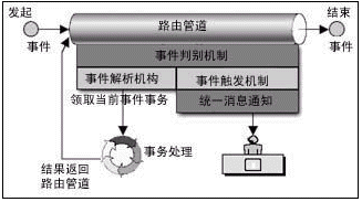 整體而言,路由機(jī)制使業(yè)務(wù)處理更加貼近現(xiàn)實(shí)生活的事件處理方式。事件判別機(jī)制、事件推出機(jī)制和相關(guān)的可直達(dá)用戶的通知方式,使得用戶不必不停地到事件處理系統(tǒng)中查詢(xún),才能得知自己是否有待辦事件。