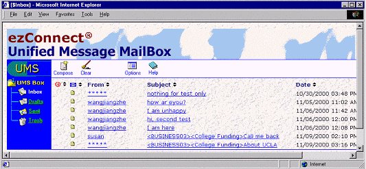 ezConnect的統(tǒng)一信息處理系統(tǒng)可以在同一個界面處理客戶交互請求,例如文字信息、網(wǎng)頁表格、電子郵件、語音郵件和傳真。從同一個UMS信箱,呼叫中心座席可以: