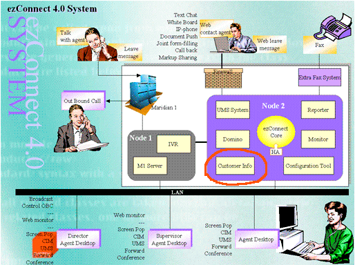 作為一種成功的企業(yè)應用案例,這種方案已經(jīng)成功的應用在我們的企業(yè)級多媒體呼叫中心 ezConnect產(chǎn)品中,該產(chǎn)品能同時處理傳統(tǒng)呼叫中心的電話請求和以互聯(lián)網(wǎng)為中心的Web 請求,同時配備多種實時交流手段,軟電話功能和基于web 的文本交談,圖片共享,白板,文檔推送,IP電話,UMS, SMS 和WAP 等為客戶提供很方便且實用的功能, 并且提供基于特定技能路由的分配器,同時處理電話和Web請求。而且同時支持多種語言并提供統(tǒng)一的配置工具。當該請求到達座席時,在座席的桌面上彈出客戶的基本信息和交易信息,座席可以根據(jù)這些信息給客戶提供更加個性化的服務。本文就針對該產(chǎn)品的實際開發(fā)和實現(xiàn), 以及工作中的一些感想來與大家共同探討客戶信息管理的應用和前景。