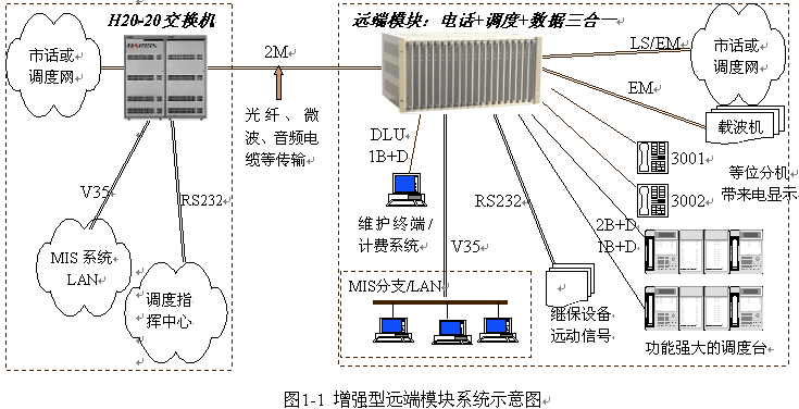 為 H20-20 交換機(jī)提供 話音、調(diào)度及數(shù)據(jù) 的三合一綜合接入;