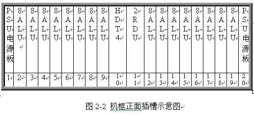 見圖 2 和 3 ,遠(yuǎn)端模塊采用 19 英寸標(biāo)準(zhǔn)機(jī)框,高度為 5U ,可安裝在各種標(biāo)準(zhǔn)的 19 英寸的機(jī)柜中。機(jī)框共 20 個插槽,正面插板,反面背板出線。每個機(jī)框可插 20 塊各種類型的板件,其中兩邊第 1 第 20 槽固定插電源板 PSU ,中間第 10 號槽固定插數(shù)字中繼接口板 HDT4 ,其余 16 個槽為通用槽口,可插 16 塊各種類型接口板。每塊板為 8 路,一個機(jī)框總共 128 話路。調(diào)度接口板 2RDU 固定插第 11 槽,該板不占機(jī)框端口。對于自帶交換系統(tǒng),需要安裝一塊系統(tǒng)信號音板 8TDU ,該板固定插 19 槽,占 8 個端口。