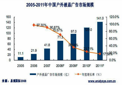 傳統(tǒng)戶外液晶廣告還存在投資過熱、收費標準混亂、渠道資源競爭激烈、資源分割和浪費嚴重等問題,市場需要一個強勢運營商對各個細分渠道進行整合、對市場秩序進行規(guī)范。