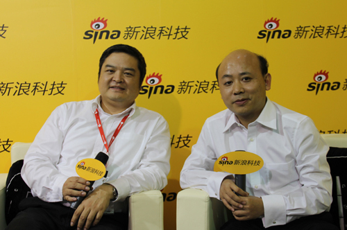 圖:UT斯達(dá)康副總裁謝永紅(左)和新浪科技主持人康釗(右)