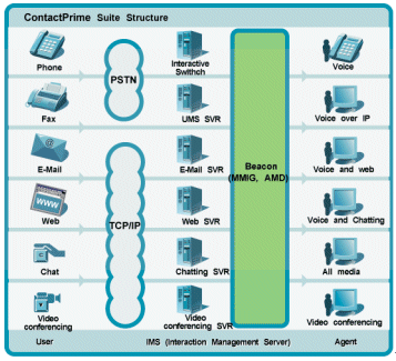 ContactPrime Beacon包含的多媒體交互網(wǎng)關(guān)(MMIG)與自動媒體分配(AMD)提供了在一點(diǎn)之上控制所有形式媒體的功能。它使得你的呼叫中心可以將商業(yè)規(guī)則應(yīng)用到所有的通信通道,并通過統(tǒng)一的軟件平臺與用戶接口執(zhí)行CRM策略。