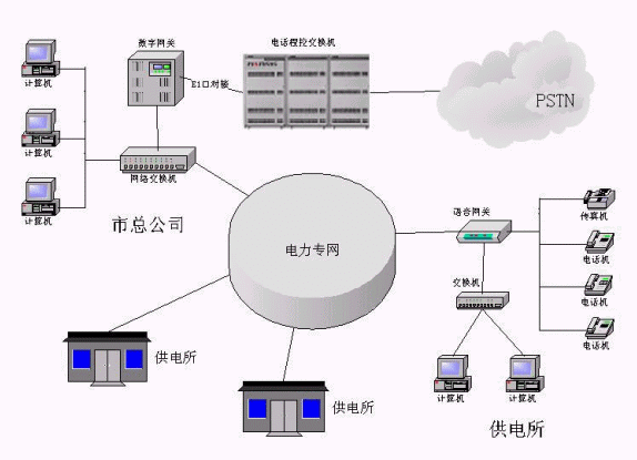 目前,某電力局在其境內(nèi)共有若干分支機(jī)構(gòu),分支機(jī)構(gòu)與總局之間目前都采用中國(guó)電信大網(wǎng)來實(shí)現(xiàn)機(jī)構(gòu)內(nèi)外話音通信要求,同時(shí)采用專線方式來實(shí)現(xiàn)相互間數(shù)據(jù)的傳輸.話費(fèi)開支始終高居不下.