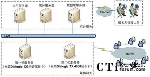 Voice and Video Response,交互式語(yǔ)音及視頻應(yīng)答)、移動(dòng)電視、視頻點(diǎn)播、網(wǎng)絡(luò)KTV、語(yǔ)音查詢、語(yǔ)音短信等。該系統(tǒng)在結(jié)構(gòu)方面主要包括兩大部分:第一部分是媒體網(wǎng)關(guān),第二部分是后臺(tái)服務(wù)。