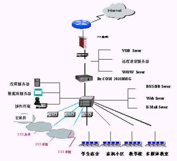BRAS的驗(yàn)證才能上網(wǎng)。校園網(wǎng)系統(tǒng)應(yīng)能覆蓋整個(gè)校園,并連接所有的學(xué)院和辦公區(qū),為大學(xué)開(kāi)展現(xiàn)代化的經(jīng)營(yíng)管理和辦公教學(xué)提供一個(gè)具有開(kāi)放式體系結(jié)構(gòu)的計(jì)算機(jī)網(wǎng)絡(luò)系統(tǒng),具有高度的可靠性和可擴(kuò)展能力。對(duì)校園網(wǎng)內(nèi)的每一用戶(hù)(老師或?qū)W生)、閱覽室、圖書(shū)館、多媒體教室等都能夠進(jìn)行單獨(dú)的管理、計(jì)費(fèi)(時(shí)長(zhǎng)、時(shí)段、包月、流量)、驗(yàn)證、授權(quán)(瀏覽、下載、收發(fā)信件、網(wǎng)站屏蔽)、共享、帶寬分配。尤其對(duì)學(xué)生和老師區(qū)別的管理非常獨(dú)特。