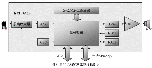 由美國Sensory Integrated Circuit公司開發(fā),2000年開始生產(chǎn),是一顆為消費類電子產(chǎn)品應(yīng)用的低價位的語音識別專用芯片,其結(jié)構(gòu)圖如圖2所示。